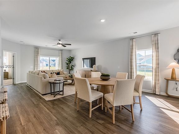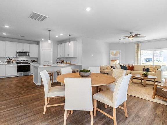 Welcome to the Bloomfield — a brand-new plan in Magnolia Park at Hilton Head Lakes! This 4-bedroom, 2.5-bath home offers an open-concept layout designed for effortless living and entertaining, with a seamless flow from the kitchen and dining area to the great room and covered patio. The kitchen features upgraded 42” cabinets, quartz countertops, tile backsplash, and stainless steel appliances. The first-floor primary suite includes double vanities, a walk-in shower, private water closet, and a spacious walk-in closet. Upstairs, enjoy three additional bedrooms plus a flexible loft space.