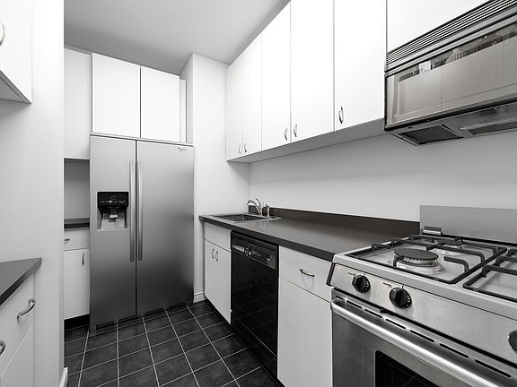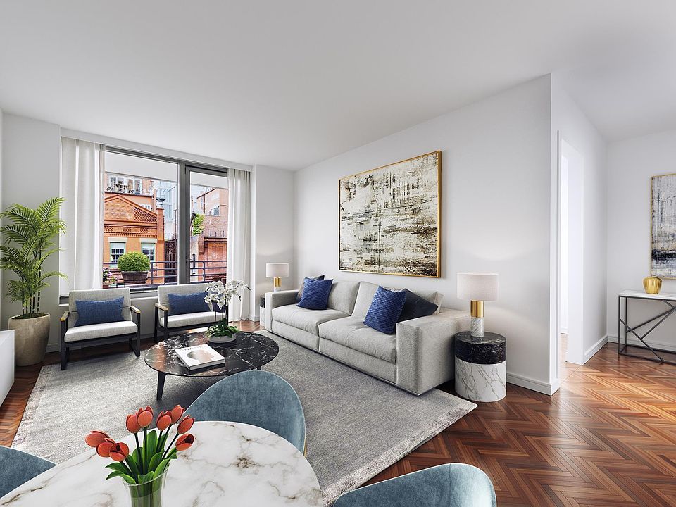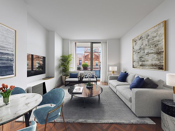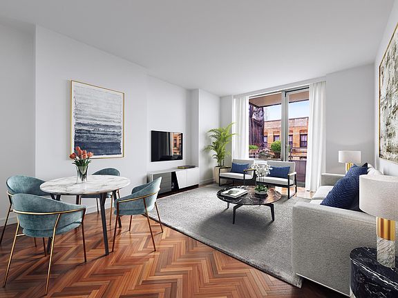 Make yourself at home in this bright, spacious one bedroom, one and a half bathroom apartment at the luxurious Leighton House condominium on the Upper East Side. This charmer in Manhattan's desirable Yorkville neighborhood welcomes you into a gracious foyer with double closet and offers a generous layout. Best of all is having your own large private terrace for outdoor enjoyment, accessed from both the living room and bedroom! Entertain or relax in the open-plan living/dining room featuring rich hardwood floors in a herringbone pattern, and floor to ceiling glass to the terrace. Nearby is a roomy kitchen for the cook styled with generous white cabinetry, stainless steel and black appliances, dark countertops and tiled flooring. The sizable bedroom also has hardwood floors and a glass door to the terrace, along with a wall of closets. Both the powder room and full bath with a tub/shower combo are chicly styled in white and black. Set on a quiet street steps from First Avenue, Leighton House was designed by renowned James Stewart Polshek & Associates, whose high-caliber work includes overseeing the restoration of Carnegie Hall. The building provides a true community feel and full-service amenities, with 24-hour doormen, concierge & resident manager, a health club with double height ceilings, yoga studio & his/her saunas, private landscaped garden complete with a children's playground & basketball court, and common laundry. The location is exceptional, right near Carl Schurz Park boasting beautiful views of the river and beyond, a lovely promenade for strolling, playground for the kids, basketball & hockey courts, and plentiful green spaces for sunning, sports & pets. Minutes away is Asphalt Green with its artificial turf field, public playgrounds, and loads of recreation options with multiple pools, sports & fitness activities, plus children's camps. Other local highlights are 92Y and Equinox, great shops & restaurants, Whole Foods & Fairway Markets, the Q, 4, 5 & 6 subway lines, and crosstown buses at 86th Street. Note - some of the photos have been virtually staged.