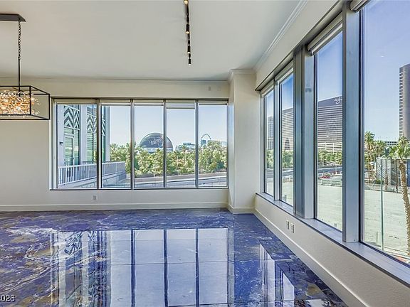 Live in one of Las Vegas’s most architecturally distinctive high-rises, The Metropolis, where Art Deco design meets panoramic views. This stunning residence offers views of the Las Vegas Strip & Sphere. Two private balconies are perfect for taking in the Las Vegas skyline. The freshly painted living and dining areas with imported flooring boasts dramatic views. The chef’s kitchen is equipped with top-of-the-line GE Profile appliances, including a gas stove-top range, double ovens, warming drawer, granite countertops, and a wine refrigerator. The primary suite has direct balcony access, a walk-in closet, and a en-suite bath with soaking tub & separate shower. Bedroom 2 has its own en-suite & private balcony. Additionally, you’ll find a versatile space for a private office, or library. Additionally this unit has 2 side by side parking spaces, and a 6'x9' Sq Ft Storage unit. The Metropolis amenities include: a heated pool, gym, 24-hour security, doggy park, BBQ area, & putting green!
