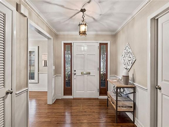 - Interior Features: Ceiling Fans(s), Master Bedroom Downstairs, Crown Molding, Solid Wood Cabinets, Eating Space In Kitchen, Stone Counters, Attic Ventilator, Attic Fan