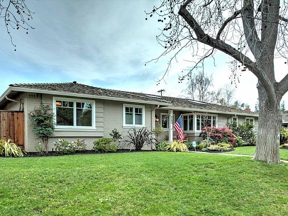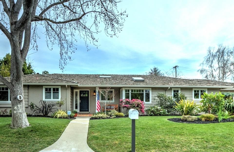 Stunning and sophisticated North Los Altos ranch with large rooms and possible 4th bedroom or office. Quality renovation includes nearly new kitchen, baths, fixtures, hardwood flooring throughout, plus soaring ceiling and skylights, even a Tahoe Blue pool. Extra wide rear yard has pool, patio, lawn, and ideal location for possbile ADU. Convenient to downtown, LA High, Almond, and Egan. Spacious and light eat-in kitchen features top grade appliances and cabinets with lots of countertop and storage space overlooking a small cul-de-sac ideal for supervised play.