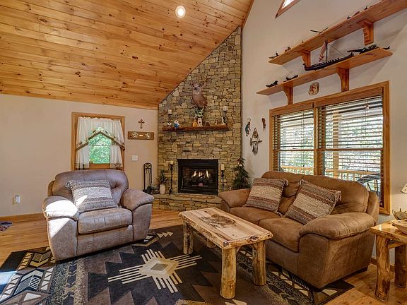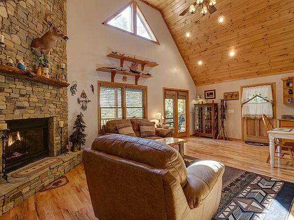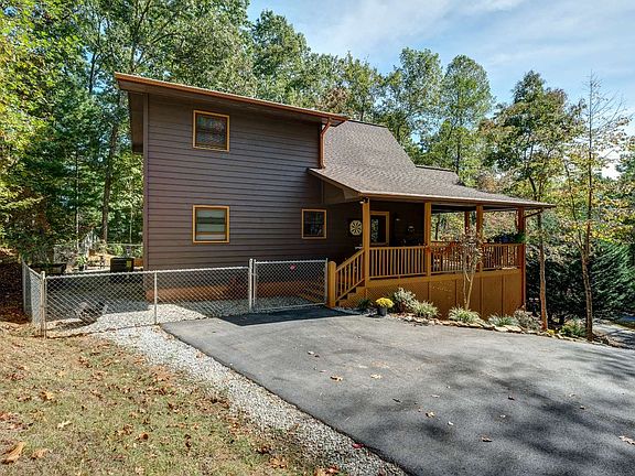 PERFECTION...describes this meticulously cared for home! 2 bedroom, 2 bath chalet featuring open kitchen (newer appliances) with plenty of cabinet and countertop space, dining area and cozy living area with beautiful stone, gas log fireplace. Spacious loft offers wonderful master suite with roomy walk in closet. Plenty of covered porch and deck with great workshop below! Large fenced in area, great for the pups. 3 stage filtration system including UV filtration. Freshly stained 9/19. All this nestled in a quiet wooded setting with easy access off paved road. Great location, just short drive to downtown Murphy, NC for shopping and entertainment as well as Blue Ridge and Blairsville, GA.