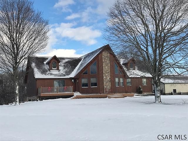 FIRM Price 1 story with loft and full high ceiling basement. Geothermal ground heat and air condition Rural setting close to Seven Springs and Hidden Valley. Large detached Garage property also has a cabin with RV hook up. Low taxes $2,800.00 a year. Solid wood doors on all rooms. Kitchen and bathroom in basement that could be used as a rental or a in-law suite
