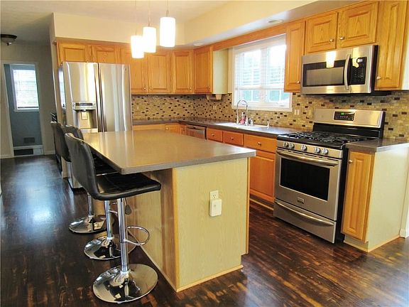 So open and light! Beautiful cathedral ceiling in the living rm with front picture window and gas fireplace! Adjoins the dining area and kitchen with hardwood floors, plenty of cabinetry, stainless steel appliances, solid surface counters and tile backspash. The dining area has a slider opening to the deck and the fenced-in rear yard. A first floor laundry, powder room, and mudroom provide storage and convenience. The second floor has a huge master suite, complete with a walk-in closet and bath with whirlpool and separate shower. Two additional bedrooms are bright and spacious, and the main bathroom has been updated. The lower level has a rec/media room. This location is super convenient to shopping, parks, and expressways.