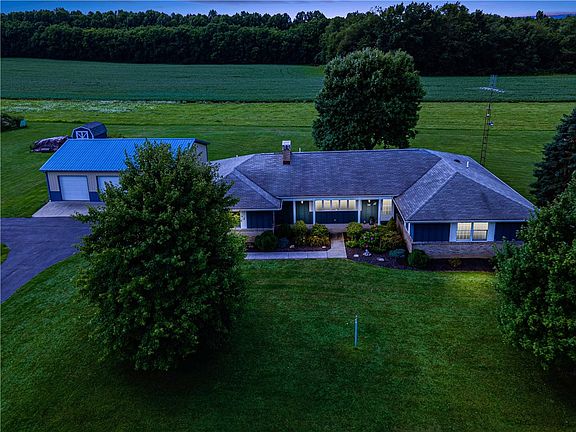 A sprawling 3 bedroom, 2.5 bath ranch on a quiet and peaceful 2 acre lot across from Mercer Public Golf Course in Jefferson Twp. From the moment one enters this home, they'll appreciate the updated flooring, neutral pallet & fabulous updates. The living room offers an abundance of natural light & is perfect for entertaining as it flows nicely into oversized kitchen & dining room area with sliding glass doors to the serene back deck. The kitchen boasts newer rustic alder wood cabinets & quartz counter tops offering a lot of storage with stainless steel appliances. Off the kitchen is access to the half bath, unfinished basement ready for your touches, first floor laundry area & two car attached garage. The bedrooms are spacious & the guest bathroom has been beautifully updated as well. The master bedroom offers an en suite & walk in closet. The property is level & offers a 30x40 detached garage pole building that's 8 years old off of a beautifully maintained asphalt drive.