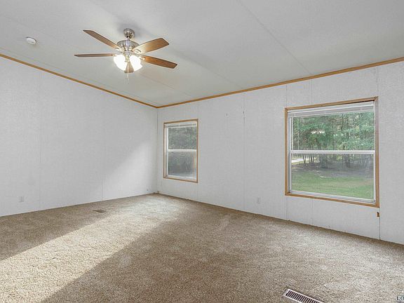 HOME NESTLED AMONGST MATURE TREES - This place offers privacy on all 4 sides with plenty of space to add additional structures. Approximately 2.4 acres in a quiet rural neighborhood located between Marshall and Jefferson off Hwy 59. The roof is approx. 1 years old and new carpet installed June, 2023. The open floor plan makes for a great setting for entertaining and staying engaged in family conversation. The primary bedroom has a master bath with double sinks, garden tub and separate shower. The other two bedrooms are on the opposite side of the living area with a hall bathroom. This is a move-in ready home just waiting for you to come and check it out.
