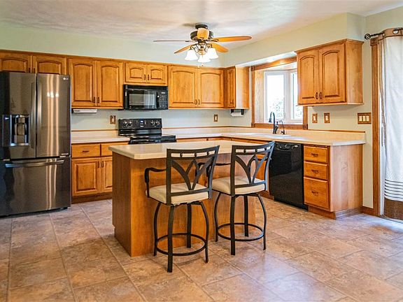 EAST DUBUQUE - Great all brick ranch w/4 BR's, 3 BA on corner lot w/2 car gar & rear shed. Large main level living room, master suite, updated kitchen, bath & roof, main floor laundry/pantry, rear patio, front porch, basketball pole & pad. All appliances are included.