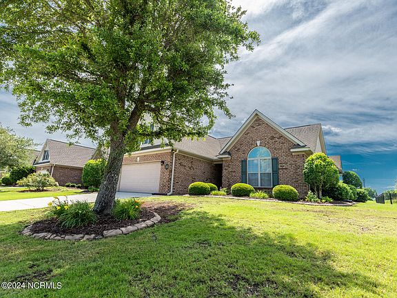 Welcome to this stunning four-bedroom, three full-bathroom brick home located on the 8th hole of the prestigious Castle Bay Country Club in Hampstead, NC. This elegant residence offers a spacious and open floor plan, ideal for both family living and entertaining. The gourmet kitchen features granite countertops, modern appliances, a breakfast bar, and a high-quality under-sink reverse osmosis water filtration system that is easy to maintain. The living areas boast high ceilings, abundant natural light, custom built-in bookshelves, and a dry bar complete with elegant barstools and table, creating a fantastic space for hosting guests. The first-floor master suite is a serene retreat with a luxurious en-suite bathroom. The fourth bedroom, located above the garage, includes its own full bathroom, offering privacy and convenience for guests to have their own space. Additional highlights include a two-car garage and a screened-in back porch, perfect for enjoying the beautifully landscaped yard. Conveniently situated just two homes away from the Castle Bay pool, golf course, pro shop, tennis and pickleball courts, gym, and only nine miles from Wilmington, thirteen miles from Surf City, and a 30-minute drive to Stone Bay Camp Lejeune, this home offers easy access to a variety of amenities and attractions. Experience the best of Hampstead living in this exceptional property.