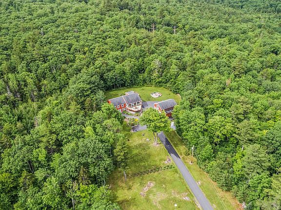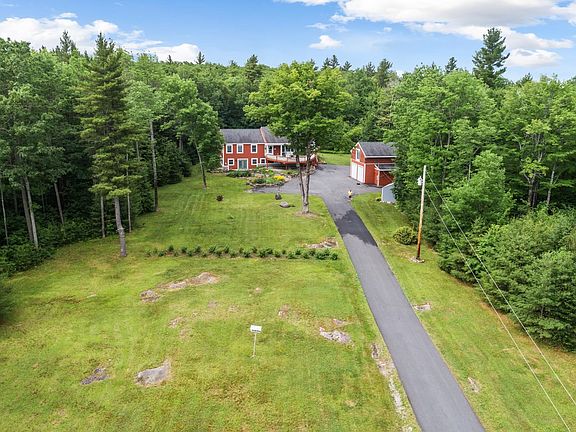 Enjoy your private oasis, with beautiful grounds, and views of Mount Cardigan. Set on 3.28 acres, enter the private drive, which meanders up to the home. Enjoy the open grounds, perfect for gardening, lawn games and other outside activities. The house takes advantage of the grounds and views with several outdoor areas in which to gather, including expansive open and covered decks, including a hot tub deck, and a fire pit ring. The primary living level has a light and airy open concept living room with hearth and pellet stove, a cheerful dining area which leads to the sunroom, and kitchen with breakfast bar. There is a primary bedroom with on-suite bath and laundry, an additional bedroom, and another bedroom or den, plus a hall bath. The lower walk-out level contains an additional bedroom or office, a full bath, and a very spacious family room, which leads out to the open yard. Gear heads, take note, there is an oversized 24 x 36 detached garage, which can accommodate up to 4 vehicles with 2 bays in tandem, and has great head height, plus storage above. Also, there is a separate tool or garden shed. Lake Sunapee and I-89 are both with a 5 minute drive from the house. Vail’s Mount Sunapee Resort is an easy 15-minute drive. Dartmouth Medical Center and College are within 30 minutes. Boston Manchester Regional Airport is within an hour, and Boston is within 90 minutes. This house and property welcome you Home. Please join us for first showings, Sat., Nov. 5, 11AM - 1PM.