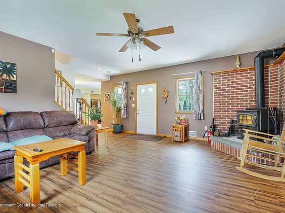 Desirable Herbertsville Home, Perfect for the growing Family... This 5 Bedroom home offers an open floor plan w/bright open Kitchen, spacious living room w/wood burning stove and sliders to a two tier deck over looking the pool and large fenced rear yard. First floor bedrooms with bath perfect for guests. Second floor has 3 additional bedrooms and a huge Master bedroom with a vaulted ceiling , closets and a Master Bath. Direct entrance from garage on large corner lot with a second driveway perfect to trailer a boat or camper. Close to parks, Restaurants and Riverfront Beaches