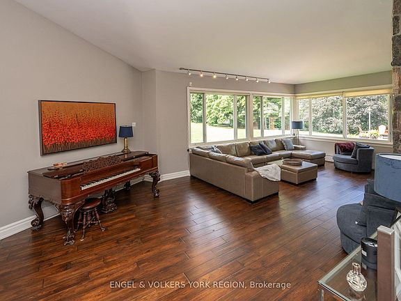 Welcome to this beautiful bungalow located in the prestigious Kingscross Estates of King City. Situated on expansive and rarely found flat land, this property offers unparalleled privacy and tranquility. The spacious living areas are perfect for both entertaining and relaxing, with large windows that flood the home with natural light and offer stunning views of the surrounding landscape. A true highlight of this estate is the outdoor space. A beautiful swimming pool invites you to unwind and enjoy the sun, while the expansive grounds provide ample space for outdoor activities and entertaining. Adding to the charm and convenience is a grandfathered circular driveway, a rare feature that enhances the property's grandeur and accessibility.This exceptional bungalow in Kingscross Estates is a rare gem, offering a unique blend of comfort, and timeless features. This property offers the capability for an in-law suite/ apartment with separate entrance and access to the garage. A spacious open-concept area with kitchen, family room and three-piece bathroom, and a bedroom. The open-concept design extends to a backyard with expansive windows, providing a seamless indoor-outdoor connection. Don't miss the opportunity to make this extraordinary property your own. Flat 2.11 acres in Kingscross Estates. Circular Driveway grandfathered by Township of King City. Roof recently redone in 2022. heated Outdoor in ground pool with Cabana. Brick Pizza Oven. In-law suite capability with separate entrance.