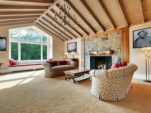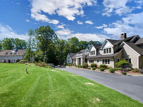 Impressive compound set on 6.43 bucolic acres in New Canaan provides privacy & serenity for the most discerning individual to host family fun or extravagant corporate functions. Lushly landscaped garden setting with a putting green, brook fed Trout pond with waterfall, pool & spa are showcased from the waterside entertainment cabana with full outdoor kitchen, BBQ grill and stone fireplace. Property consists of a stately main residence with 6 BRs, 6 Full & 2 half baths, and guest cottage. The most spectacular feature is the Sports Barn! Complete with a professional indoor basketball court, theatrical production stage, ballet studio, steam room, bowling alley, billiards room, golf simulator, THX home theatre & stadium seating for 30. Consist of 2 parcels #187566 and #187567