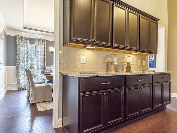 - Kitchen Features: Breakfast Bar, Eat-in Kitchen, View to Family Room, Stone Counters, Kitchen Island, Pantry Walk-In, Cabinets White