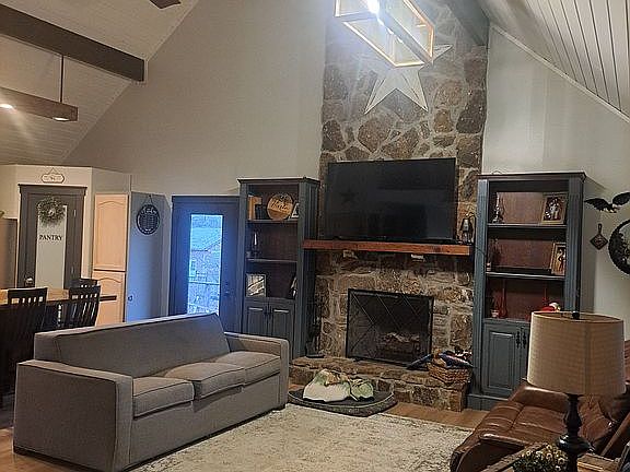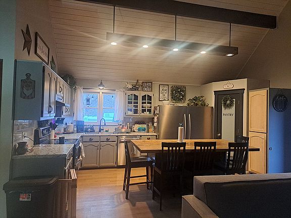 For Sale By Owner. Spacious 3BR/3BA home on 6.76 acres of fully fenced, usable land—ideal for livestock. Two bedrooms are master suites. Features include tongue-and-groove ceilings, large eat at island, a large wood-burning fireplace, wrap-around porch, and main-level living new LVP flooring. Laundry on main level. Full unfinished basement offers expansion potential. Property includes a 32x50 detached workshop with separate power. Large carport just installed November 2025. Flat acreage with goat and sheep fencing already in place. Private setting with endless possibilities.
