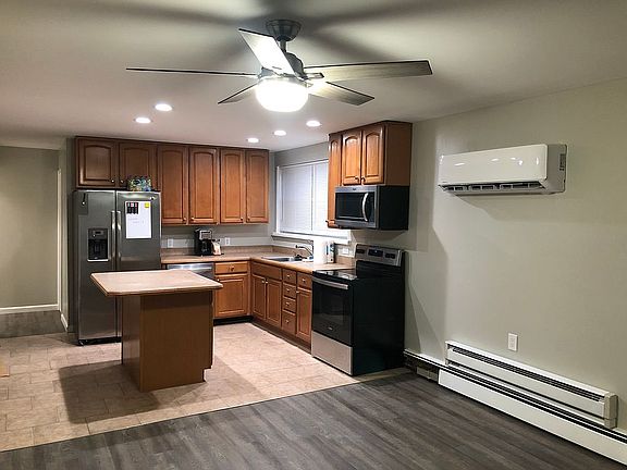 The unit features garage storage, large unfinished basement, and a beautiful large yard and patio area. The unit offered for rent is all one floor living with a private entrance, located on the first floor of a triplex, nestled in the Warminster Speedway on a large corner lot. The kitchen is updated with stainless steel appliances, including a refrigerator with water and ice dispenser on the door, dishwasher, electric glass top range, and a built in over the range microwave. The kitchen features natural stain oak cabinetry with a functional island for prep space and breakfast bar seating. The kitchen also features tiled ceramic flooring and recessed lighting. The open concept kitchen flows into the dining area lending plenty of space for a large table. This area also features a ceiling fan to provide airflow when cooking and dining. The dining area, entryway, and living room are all being renovated to feature a sandalwood colored vinyl plank flooring throughout for a modern touch. The large living room also features a ceiling fan and lots of space for a sectional couch to entertain. The entire living area and bedrooms are also being repainted with a gray shimmer colored paint for a modern bright feel. The laundry room adjacent to the kitchen features a large built in storage area to the left and to your right is a large pantry for food storage easily accessible right off the kitchen. The laundry area also features a large utility sink and hookups for in-unit washer and dryer. The second bathroom is accessible through the laundry area. This entire bathroom is brand new featuring a shower enclosure, toilet, linen closet, and 30" vanity with cultured carerra stone top with brushed nickel fixtures throughout. The laundry area and second bathroom also feature the same sandalwood vinyl plank flooring used in the dining and living room areas. The 4 bedrooms are being repainted with the same modern gray shimmer color paint featured throughout the living areas, freshly carpeted, and outfitted with new energy efficient windows as well. Each room features its own independently controlled electric baseboard heater, and a brand new WiFi enabled mini split unit with air conditioning and heat is being installed in the main living area off the dining room. The existing main bathroom is accessible through the hallway off the kitchen adjacent to the bedrooms. This bathroom is being renovated as well with a new tub and fiberglass enclosure with a window for added light and ventilation, new 36" vanity with cultured marble top, and plenty of storage. The bathroom also contains a linen closet right next to the tub so you can never forget your towel. The bathroom features white ceramic tile flooring, brushed nickel fixtures throughout, and an automatic exhaust fan that only activates when moisture is detected. The bedroom hallway provides access to the unfinished basement area with a large open room as well as a utility room with electric panel and electric water heater for the unit. At the end of the bedroom hallway there is a door leading to the garage storage area for ease of access from the interior of the home. This garage storage area also leads out to the patio and side yard with ample space for a grill, outdoor seating, and dining area. The property is within the boundaries of the Centennial School District with the local school assignments being McDonald Elementary, Log College Middle School, and William Tennent High School. Contact me with any questions or to come see the work in progress; available for August 1st move-in. NOTE: PICTURES ARE PRE-RENOVATION! Schedule a showing to see the work in progress ready for an August 1st move in date! Landlord pays for Trash Removal, Water/Sewer Fees, and Yard Maintenance. No Smoking. No dogs over 25lbs, small dogs and cats only. 4 Private driveway parking spaces. Good credit required, gross monthly income should equal 3x rent amount to qualify.