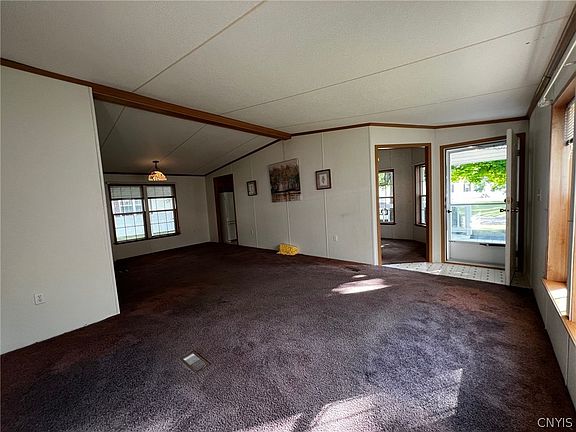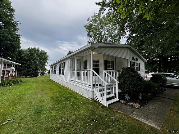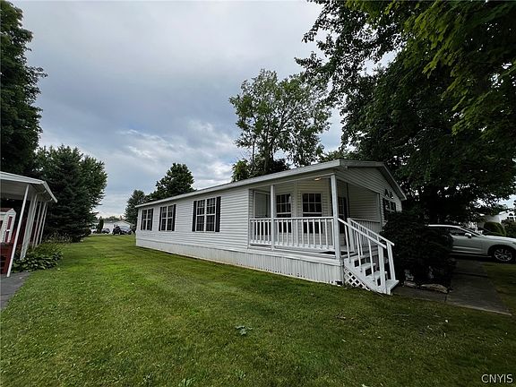 Enjoy your life in this low maintenance, 2 bed, 2 bath home that includes A Master En-Suite with walk in closet and soaking tub and stand up shower. a walk out laundry room offers a washer and dryer and plenty of storage. A Cathedral ceiling adorns this oversized living/dinning/den area. The kitchen hosts a walk in pantry and a breakfast room for you to enjoy your morning routine in peace. The asphalt driveway has a covered carport and the front entrance has a cute little porch for you to enjoy sitting outside watching the bunnies hop around the beautiful landscaped front yard. Lot rent is $475 with water and garbage included, reduction with STAR qualifications. Clinton School District, 5mins from New Hartford Shopping, Restaurants and Apple Cider.