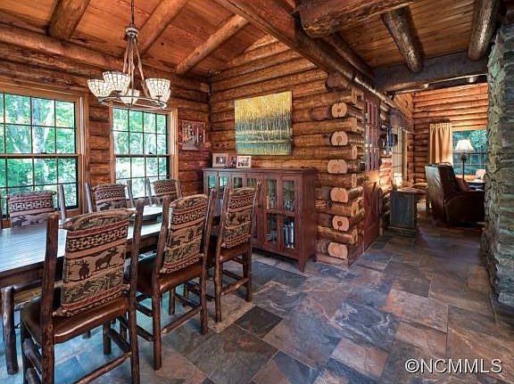 A river runs through it! Rustic log home nestled on a private paradise of 60+ acres. Custom kitchen with tile floors & back splash, leathered granite tops, & new cabinetry. Floor to ceiling stone fireplace & landing loft in great room. Two multi bay garages. 1,020 sq. ft. guest quarters. Hiking trails, 3,000 ft. of river frontage, level fields to play in, multiple building sites, tall trees, and wildlife make this a must own!