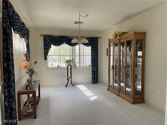 Take a peek at this 55+ single-story home located in Promanade at the Meadow Guard Gated Community. This cozy 3-bedroom home with 2232 sq. ft of living space also known as the KeyWest Model has an inviting Formal Living Room with a Separate Family room. Double Doors that open into the Primary Bedroom. Carpet throughout with laminate wood in the Kitchen and Dining area. Private yard with beautiful views, desert landscaping, and grass. Near shopping, Springs Preserve, and minutes from Downtown Las Vegas and the Las Vegas Strip!