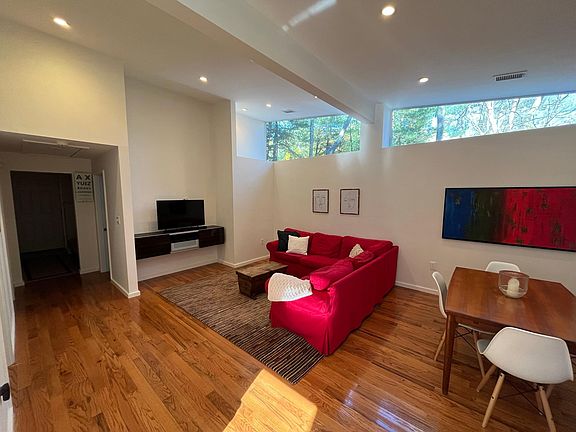 1-bedroom, fully furnished apartment in Lexington. With high vaulted ceilings and plenty of natural light. Unit is attached by a breezeway to the main house but has a separate, independent entrance. Surrounded by nature and trees. On a quiet cul-de-sac. Great commuting location near I-95. Also close to many Town facilities. Central air conditioned with in-unit Washer and Dryer, Dishwasher and Gas Range. 1 outdoor parking spot included. Rent includes utilities. no smoking, one time cleaning fee, pets allowed