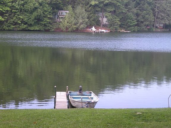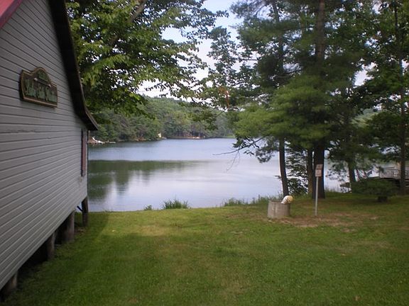 Lake Ondawa with a Great New Price of 99,000. Near village of Big Pond!! 2 BR, 1 1/2 BA Cottage with Bay Window overlooking beautiful Lake Ondawa!! Screened in Pavilion! Fire Pit. Has its own Septic and a New Well. Pre-dated right of way to use lake front across the street in front of the cottage. Natural Gas Heat and Oven/Range. New laminate flooring, Exterior is newly painted with Sherman Williams Duration Paint. Newer Metal Roof. Cottage has outside water shut off so you can winterize it or you could live here year round. Membership for lake maint. and other privileges $200. YR.