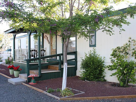 A TRUE BEAUTY, inside & out! Spacious, immaculate 5 bdrm 3 bath home w/entry ramp on .88 acre with 2 car garage w/opener & circular drive. Fencing, lush lawns & a stunning array of flowers, shrubs, mature trees (apple, peach, pear, apricot, pines, & shade), grapevines & garden areas to make living here pure delight! Everything is on sprinklers & drip for easy, worry-free maintenance. Four bedrooms & 2 baths on one end, inc a Jack 'n Jill that serves 2 bedrooms privately, with the generously-sized master suite on the other end of the home. There's an outdoor living/entertaining space in the Arizona room w/massive fireplace beside a sheltered patio. There are other outbuildings, including a garden shed, barn/storage, stable & tack shed, etc. Lovely property that is literally turn-key ready!