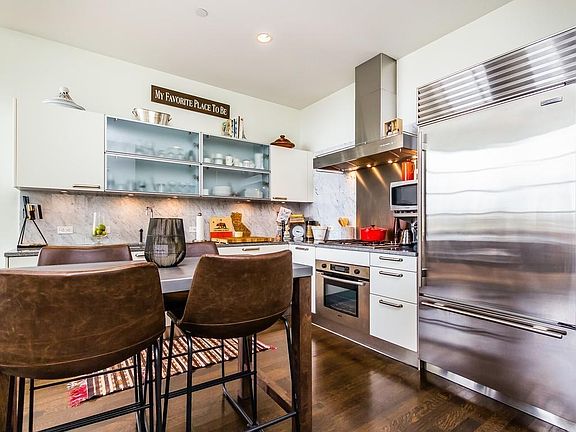 Dazzling sun filled one bedroom located in architect Frank Gehry's award winning 360 Newbury Street. This home features a contemporary chef's kitchen with gas cooking and top -of-the-line appliances from Miele, Bosch & Sub Zero. This 5th floor space is accented by an open concept living/dining layout designed around a dramatic loft style window with panoramic south/west views which gives this pad an amazing and hard-to-find vibe. Elevated features include Carrara marble bath, a large interior bedroom with walk-in closet, hardwood floors throughout most of the unit and a private in-unit laundry. Other amenities include 2 elevators, concierge services and easy access to public transportation and highways.