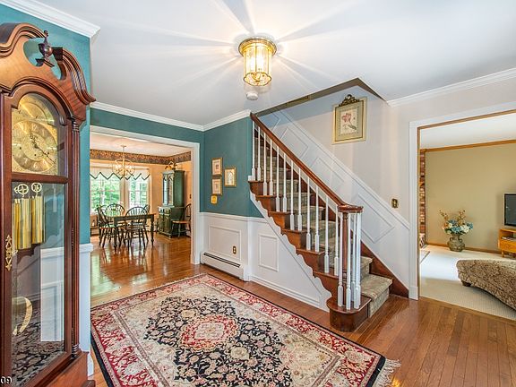 This stately brick front colonial offers the ultimate gift of privacy and boasts all the "I wants" including a granite and stainless kitchen; crown molding; wood floors (LR, DR, Kit, Foyer); finished basement with game/media room and workshop; 2 fireplaces; multi-room master suite with 2 walk-ins, sitting room/office and attached bath with jetted tub; 3 sizeable secondary bedrooms including one with walk in closet. Large windows bathe the home in natural light. Sliding doors off the front to back family room access the expansive deck with hot tub - perfect for entertaining. Welcoming front entrance with paver walkway framed by an extensive assortment of specimen trees, shrubs & perennials. This beautiful turnkey home is set well back from the road on 3 tree-lined acres surrounded by conservation land.