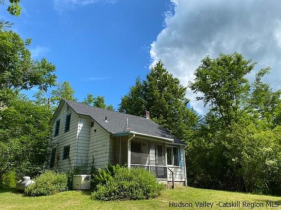 "Rainbow Hill" - a special mid- mountain plateau on Ohayo Mountain that captures & reflects the light creating rainbows in spring/summer afternoon sunshowers. This level spot was apart of Woodstock's farming days and several mid 1800's barns remain. Open fields and a pond attract abundant wildlife. Still today, you'll find a neighboring home farm with chickens (and fresh eggs), plus a friendly cow and her offspring. Across from the property is a DEC woodland (no trails). The front rocking chair porch welcomes guests and is visible through the large picture windows in the kitchen/dining area and living room. Completing the first floor to the rear of the house is a bright room with half-bath. This was as an office/library, but certainly offers many uses and from here one steps out to the small screen porch and out to the backyard. This house is cozy in winter and during warmer weather there is the ability to leave the screen porch door open to the rear yard and field visible through the trees behind to capture cooling breezes. Oak wood flooring runs through most of the house and may be under the kitchen flooring as well since the house is a 1925 bungalow structure complete with a full, unfinished basement for storage, laundry and insulation against winter cold. Taking the stairway up to the second story one arrives on a landing that leads to bedrooms on either side of the good sized full bath. The yard in back is green and inviting and just a few steps away discover the old, small barn which more recently had been a garage and storage. Here there is a loft which shows clear evidence of more recent structural support. It could become a special hideaway, a painters retreat if skylights added.. or, just good high & dry storage. This home is an excellent, well priced opportunity to live in Woodstock. And, yes, in a community with neighbors that walk the nearby roads with their dogs and children. Bring paint and some TLC and turn the house into a treasure. The owner of many years, a writer and photographer who chronicled the local streetscapes flora and fauna moved West. He leaves the fates to find a special new owner for the property. The property is being sold "as is" .