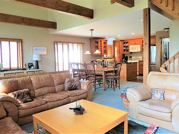 LOCATION, LOCATION, LOCATION, holds true to the prime location of this unique 4 bedroom 2.5 bath town home on the coveted Sachem Trail at Okemo Mountain Resort. This location gives you some the best ski in/out access from early to late season. Extra exterior ski lockers have space enough for the current family of 7. Take in the panoramic breathtaking views all the way into NH. Now step into the oversized entry/mud/workout room with custom cubbies to store all of you gear to include electrical outlets for your portable glove and boot dryers. This home has an inviting open living concept to keep everyone together, even if your the chef at the moment, in the fully equipped kitchen with natural wood cabinetry and granite counters. The large dinning space can host everyone with killer views and direct access to the oversized deck. In the living area with soaring cathedral ceilings snuggle up to a cozy fire after a day on the slopes. Or enjoy the hot tub on the covered porch with plexiglass roofing to enjoy the stars. The primary suite boasts a balcony with exceptional views, a huge walk in closet and full bath. Downstairs in the walk out lower level are 3 bedrooms, 2 bunkrooms and a queen, another large full bath, double sinks with granite counters and laundry room. This year round oasis has hiking from the front door, tennis courts and beautiful inground pool. Your Okemo Mountain paradise awaits!