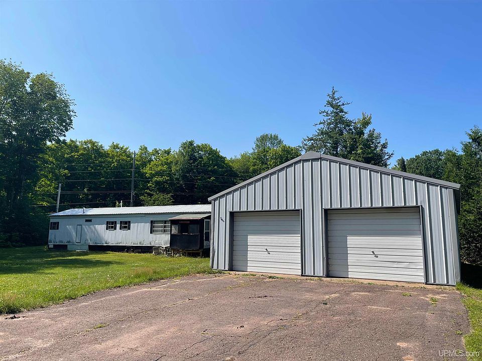 COUNTRY LIKE SETTING - This 4+ acre parcel is ready for you to build! Comes with a 26 x 26 pole building, sewer is already hooked up, and a drilled well. Live in the 1972 trailer while you are building or just keep it and enjoy what the Northwoods has to offer. Close to several major ski hills, walking distance to Lake Gogebic, and close to all the snowmobile and ATV trails. Plenty of room to park those trailers and even has the storage to accommodate.