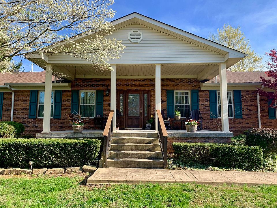 Brick rancher fully updated on a little over half an acre. Home has a master bedroom with two closets and bath with a walk in shower and extra cabinets. Two other bedrooms on the same end of the home. Lots of storage, huge living room with wood beams along the ceiling, formal dining room with extra cabinets, separate formal living that is currently being used as an office/den, a huge laundry room that includes extra storage, and a big entry way that includes built in book shelves. The property also includes a roofed carport perfect for camper parking and a workshop with garage door, both with electric service. Back yard includes a large screened in porch. You'll want to sit a while on the front porch and enjoy the mountain views while enjoying the sounds of the landscape water feature.