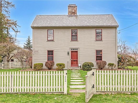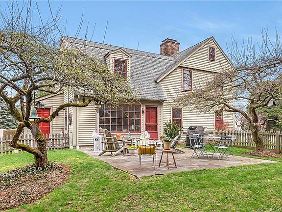 Walk to beach, town & train from this iconic REPRODUCTION Saltbox Colonial, lovingly maintained & thoughtfully updated by long time owners. The custom kitchen, fully open to the family room, sets the tone of quality & informality combined w/classic colonial architectural elements. Farmhouse sink & countertops of timeless Vermont Soapstone, enhance the hand milled cabinetry. Along w/the reclaimed wood-topped island, this kitchen is designed to maximize function & storage. The space flows into the family room, (originally the formal DR w/sea shell motif corner cabinets & huge multi paned window, hallmarks of architect Cameron Clark. Step out from here onto a spacious & delightful patio framed by cherry trees & white rose bushes. Living room is anchored by stone FPL & charmed by ceiling beams. DR/office/playroom has a wall of shelves & doors for privacy. Pantry nook leads to laundry/half bath & basement - perfect for a home gym, w/plenty of ceiling height. Upstairs space includes 3 truly generously scaled bedrooms, 2 are en-suite, with 1 of the bathrooms also offering hallway access. Unexpectedly there are closets galore Pull down staircase to fully floored attic offers even more storage. 2 car detached garage w/loft, built in 2008, completes this in-town oasis. EASY LIVING with miles of sidewalks leading to the best that Fairfield has to offer: places of natural beauty, historic town green & the vibrant town center w/restaurants, theatres and train. NON FLOOD PLAIN setting