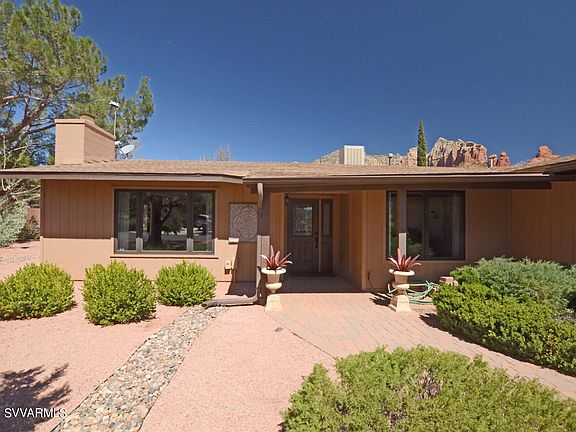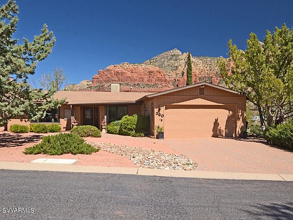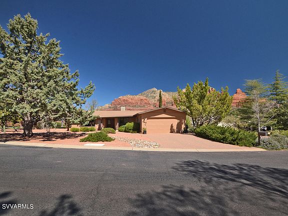 THIS IS A WELL-MAINTAINED, 3 bedroom/2 bathroom home built by Sedona's pioneer builder Dave Blauert. The single-story property spans 1762 sq ft and comes with an oversized 2-car garage, street parking, and central HVAC with gas furnace. The home sits on a 0.25 acre lot with mature landscaping, a wood-fenced backyard, and a covered patio ideal for entertaining. The house features a natural rock, wood-burning fireplace, Pella windows and doors, and a water filter in the kitchen. This is a great opportunity for a 3/2 home with privacy and enchanting views. It's located on a cul-de-sac in a quiet Uptown neighborhood with a friendly HOA. The adjacent green space area provides an extra layer of seclusion and is close to USFS trails and amenities. POSSIBLE OWNER CARRY. The home offers amazing red rock views and a large eat-in kitchen with a bay window and window seat, a greenhouse window, and a Jenn-Air 5-burner stove top. Two bedrooms have walk-in closets. The oversize double garage offers laundry, storage, and a workbench. The HOA fee is only $75 annually and preserves the sense of neighborhood. This home is move-in ready, and all appliances are included. A wonderful place to call home, it's location also makes it an an excellent rental property. NO short-term rentals. Rentals must be for 12-months minimum.