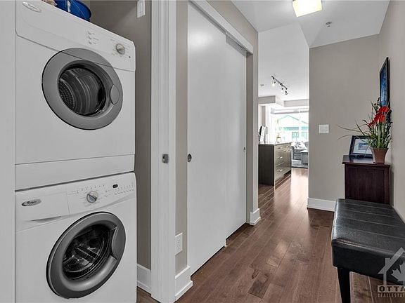 Discover contemporary living in the heart of Westboro, walking distance to all of your favourite coffee shops, restaurants, and the Ottawa River. A choice layout, this condo features 2 bedrooms and 2 baths, with upgrades of an oversized island for entertaining, custom blinds, and a welcoming foyer. Bright windows that draw an abundance of natural light throughout each living space. The kitchen boasts stainless steel appliances, modern backsplash, quartz counters, and plenty of cabinetry. A primary bedroom offering a walk-in closet, ensuite bath, overlooking the private balcony. Rich hardwood flooring, neutral paint colours, and timeless fixtures provide you with a sense of calm in this beautiful space. Building amenities include an exercise room, party room, theatre/screening room, a rooftop terrace, sauna, and yoga studio. This unit also includes parking, a locker, and bike storage for added convenience. Newer Heat Pump. Bonus - enjoy 6 months of condos fees for FREE!! 24 hr irrev.