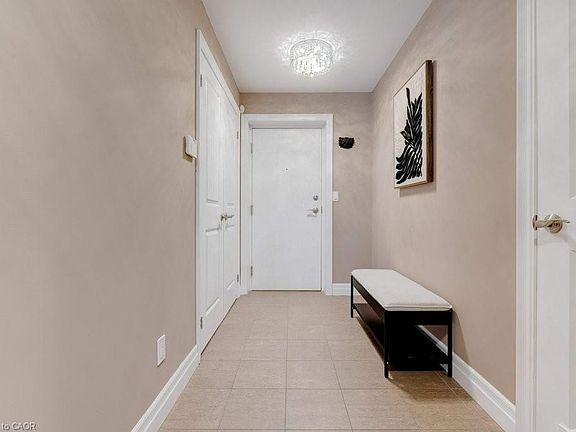 Welcome to the highly sought-after 360 Pearl—a premier building in the heart of downtown Burlington with gorgeous lake and escarpment views in every direction. This beautifully updated 2-bed, 2-bath suite offers an open-concept layout, floor-to-ceiling windows, and 9 ft ceilings, creating a bright and sophisticated living space. The kitchen impresses with custom cabinetry, pot drawers and slide-out shelving, stainless steel appliances which include a gas stove, a generous island for entertaining, and granite countertops. The Great Room is wrapped in windows, showcasing lake views and providing a seamless walkout to your expansive wrap-around balcony. The primary suite offers its own balcony access, a spacious walk-in closet with built-in organizers, and a spa-inspired ensuite with a large glass shower and extended vanity. The second bedroom features stunning lake views and a custom Murphy bed—perfect for easily transitioning between a home office and guest space. A stylish 4-piece bathroom with granite finishes and convenient in-suite laundry complete the interior. This unit truly shines for those who love to entertain. The building offers exceptional amenities including a rooftop terrace with BBQs, state-of-the-art gym with a steam room, party room, games room, movie theatre, and 24-hour concierge/security. Walk to Burlington’s best restaurants, boutique shops, Spencer Smith Park, and waterfront events. Includes 1 parking space (Level B #4) and 1 locker (Level B #57).
