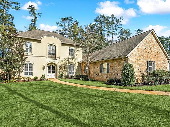 Gorgeous home with plenty of architectural details and amenities in gated neighborhood convenient to schools, shopping, restaurants, I-12, etc. Family room with 20 ft. ceilings, hardwood floors, fireplace flanked with custom built-ins and wall of windows offering tons of natural light. Living room or office, formal dining room w/ butler's pantry, bar sink and beverage cooler, huge kitchen w/ double ovens, warming drawer, gas cooktop, island w/ vegetable, breakfast room and lovely keeping room. Primary en-suite with hardwood floors, fireplace and adjoining sitting room/study. 2nd bedroom downstairs with full bath. Top of stairs landing works well as 2nd den/game-room. 2 additional large bedrooms upstairs. Entertaining dream with screened in brick patio and fenced yard/120x175 lot. Additional perks are stunning millwork, plantation shutters, sprinkler system, gutters, and an abundance of storage space and walk-in closets. Community pool and cabana.