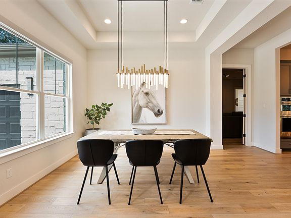 Welcome to 360 Premier Park Loop in the desirable Caliterra community of Dripping Springs, TX. This luxury Hill Country home offers 4 bedrooms, 3.5 bathrooms, and 3,621 sq ft of upgraded living space on a 0.4-acre lot. Designed for both comfort and function, it includes a rare oversized insulated 4-car garage with epoxy floors. Inside, the open floor plan features European White Oak hardwood floors, soaring ceilings, recessed lighting, and abundant natural light. The chef’s kitchen boasts quartz countertops, offset-tile backsplash, custom cabinetry with soft-close drawers, pull-out shelving, trash pull-out, matte black faucet, reverse osmosis system, and a large island for entertaining. The family room highlights a black slate fireplace with tile to the ceiling and a 4-panel slider for seamless indoor-outdoor living. The private primary suite offers a spa-inspired bath with frameless shower, porcelain tile to the ceiling, soaking tub, and custom closets. Throughout the home, plumbing fixtures and hardware are upgraded to a matte black finish. Additional highlights include a dedicated office, versatile media/flex room with 5-point surround sound, and a Sonos system with speakers in the kitchen, patio, and master bath. Blinds/shades, upgraded ceiling fans, modern interior doors, water softener, insulated garage doors, and premium finishes are all included. Outside, enjoy a private backyard shaded by oak trees with space for gardening, play, or a pool. Located in award-winning Dripping Springs ISD, Caliterra offers resort-style amenities and close access to downtown Dripping Springs, wineries, and Austin.