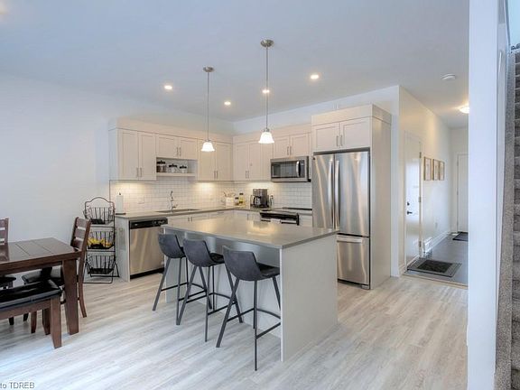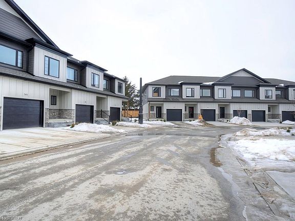 Simply 360 3 bedroom, 3 bathroom END UNIT condo with a finished recreation room! This unit features an open concept main floor with designer kitchen, quartz countertops, tiled backsplash, 9 ft ceilings on both levels and upgraded ceramic floors throughout the foyer and bath areas. The second level has 3 nice size bedrooms, 9 ft ceilings, laundry closet with stackable units, and a large master with ensuite. The lower level offers more finished space plus a storage area with on demand water heater, air exchanger and energy efficient furnace. All stainless steel appliances included with upgraded double door fridge. BBQ gas line out back. Located close to schools, shopping and HWY #19 with easy access to the 401.
