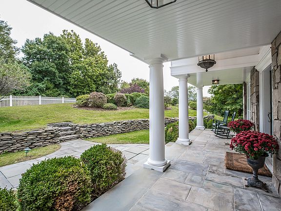 Sequestered behind a gate at the end of a quiet cul-de-sac, surrounded by beautiful New England stonewalls on nearly three acres; take a hike through the abutting Byram River Conservancy trails then a swim in the pool which boasts lovely perennial gardens. This stone and clapboard home has the charm of European faux painting and updated amenities, beautiful wide plank floor boards, columns and arches; excellent interior and exterior entertaining spaces and potential horse property.