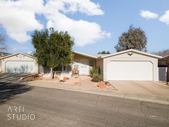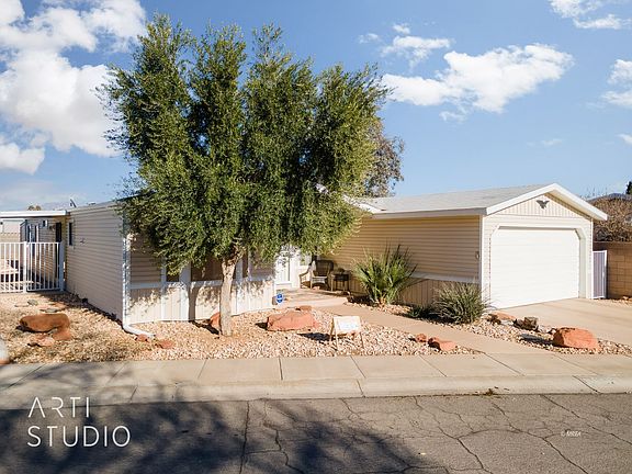 This 2 bedroom 2 bath manufactured home has been well maintained and it shows it! Located in the Hacienda Estates in the golf resort community of Mesquite, NV, you will find yourself comfortably at home. If you enjoy warm weather, plenty of sunshine, outdoor activities, and soaking in the hot tub, you better grab this one quick. Even better, there is an attached 432 sq ft garage and a 9 x 8 garden shed. Mesquite is close to ski resorts, national lakes, ATV trails, national parks, and world class entertainment. This home is you!