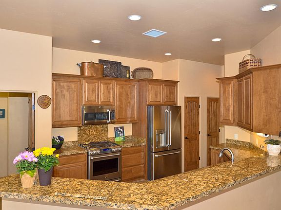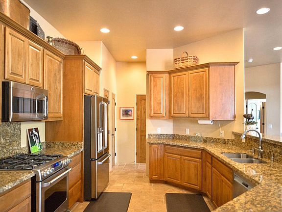This home has Red Rock VIEWS, POOL and is centrally located in W. Sedona. Quality built with Travertine floors, Granite Counters, Alder wood doors and cabinets. Open floor plan with lots of natural and easy viewing of the Red Rocks. Kitchen boasts stainless steel GE Cafe appliances and Bosch dishwasher. Sliders open to the stamped concrete covered patio where you can relax by the heated pool/spa and stay warm on chilly nights by the fire. Pool is plumbed with swim jets too. The large master suite has walk-in closet, dual vanities, granite counters, Travertine walk-in shower, and relaxing soaking tub. Views surround this home 360 degrees including Thunder Mt., Chimney Rock and Mogollon Rim. Easy to maintain fenced yard has fruit trees. Upgraded no-paint stucco for easy living.