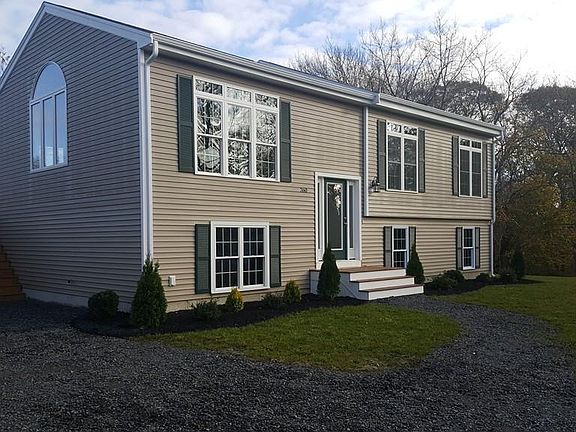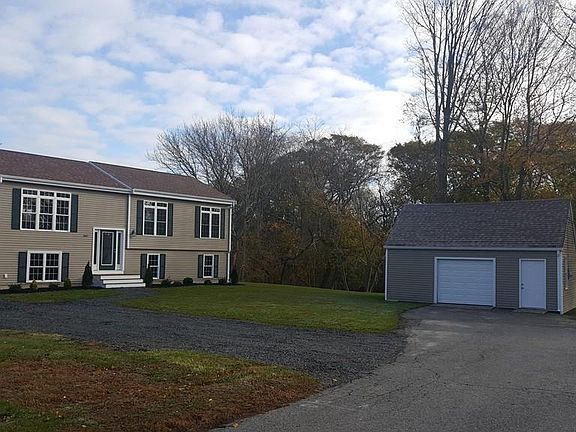 Brand new home at the end of a quiet dead end street. A great open floor plan with a cathedral ceiling in the living room/kitchen/dining area with a 10x12 PT deck off the dining room. Large triple window and palladian arch windows make the main living space bright and airy. Detailed moldings surround the baseboard and doorways, beautifully accenting the home. Large private backyard area. Walk to town playground and Dighton Town Library. FHA/ propane unit has AC coil and ready for central air with the addition of a condenser. Downstairs is perfect to finish into a great room, media room or even an in-law setup, home has 4 bedroom septic and lower level fitted with fire egress windows. Oversized 1 car detached garage complete this property. Don't miss this wonderful property.