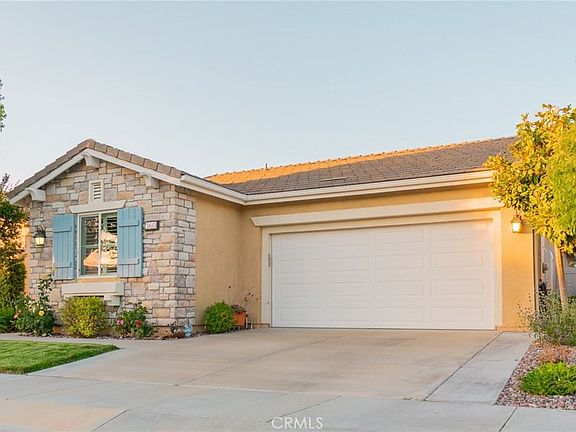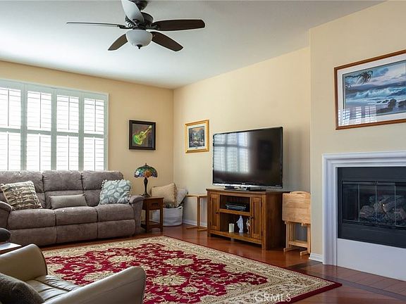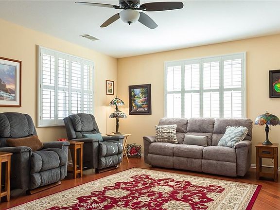 Welcome Home!! Please note: Mello Roos paid down to 750.00!! This gorgeous home is located in the premier 55+ active community of Four Seasons! The Arbors plan offers an open floor plan sporting 2 bedrooms and 2 baths, PLUS an office/den/craft room! This home has been well cared for and is in ready to move-in condition being turn-key!! This home has been custom painted and is bright and airy as you walk in the front door. Hickory Hardwood floors grace the dining room, kitchen, hallway and master suite. hallways. The open kitchen has granite counter tops, butler's pantry with a kitchen island, too. All of the kitchen cabinets have slide outs, as well!! Beautiful Custom Danmer Plantation Shutters on windows and ceiling fans in the bedrooms and living area. Enjoy the private backyard with AlumaWood patio cover with custom built in fans and lighting, with a gorgeous custom concrete patio with easy maintenance landscaping, while catching a view of the mountains. All this plus all of the Four Seasons amenities which include tennis courts, Bocce ball, 3 pools, gym, Bistro, Billiards, shuffle board, clubhouse, library and so much more!!! Hurry and make this your NEW HOME!!!