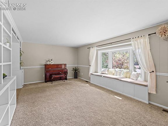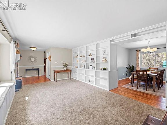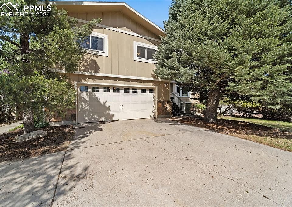 Set in the sought-after neighborhood of Rockrimmon, this 4 bed/4 bath home with a 2 car garage is a must-see! Nestled amid piñon pines and cedar trees, it backs to open space and a hiking trail. Upon entering, you're greeted by a large front room with built-in shelving and a charming bay window seat. Beyond it, a formal dining room with wainscoting seamlessly connects to the updated kitchen. The kitchen boasts granite counters, stainless steel appliances, a white subway tile backsplash, a breakfast bar, and a large farmhouse sink. A sliding glass door off of the kitchen leads to a deck overlooking the backyard. The backyard offers something for everyone. It features garden beds, fruit trees, raspberry bushes, and honeysuckles, perfect for those aspiring towards sustainable living. There's also a deck for relaxing, a play set for kids, and ample space for gardening. Love to hike? Enjoy a private gate that opens to a walking path right outside your backyard. Back inside, move to the lower level to find a show-stopping wall-to-wall brick wood-burning fireplace serving as the perfect centerpiece to the living room. The lower level is complete with a roomy laundry room with ample storage. Move upstairs and discover the expansive master with an en-suite bathroom and large walk-in closet, a true retreat. The en-suite bathroom is fully updated with a newer vanity, tile floor, and a large walk-in shower. The upper level is complete with two additional bedrooms and a full bathroom. Four levels and 3,064 SQFT in all, take the stairs down to the lowest level to find the bright and open garden-level basement. This space is perfect for gathering with family and friends. One basement bedroom with a walk-in closet and full bathroom make the perfect space for kids, an office, or guests. Even more, this home is set in the highly coveted D-20 school district and is only minutes from dining, shopping, and jaw-dropping outdoor spaces like Ute Valley Park and Blodgett Peak. Don't wait!