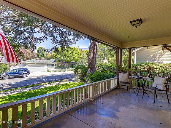 Adorable front & side-gabled bungalow with attic windows and gable vents and wood siding situated on a very desirable street in North Monrovia. From the large front porch with railing, the beadboard ceiling and brackets, you enter through the glass front door into a bright living room with stone fireplace, crown molding, side built-in bookcases, wall-to-wall mantle, and side and front windows with stained glass. Through an arched doorway you'll find the expansive formal dining room with crown molding, ceiling fan, built-in china hutch and buffet with glass hardware, and French doors that lead to a sweet side porch with a pergola. There are two nice sized bedrooms, both with crown molding, that share a vintage era full bathroom with large built-ins, pedestal sink, shower/tub combo with ceramic tile surround, and wood flooring. The kitchen has ample cabinetry, recessed lighting, tile flooring, ceramic back-splash, stainless stove and hood, and a laundry area. Out back is a large yard area, patio, a working vintage lamp post, separate garden/dog run area, hot tub, and a finished one-car detached garage. Other amenities include river rock chimney, some original windows, oak flooring, wall a/c, and lots of trees. This darling place is ready for your furniture!