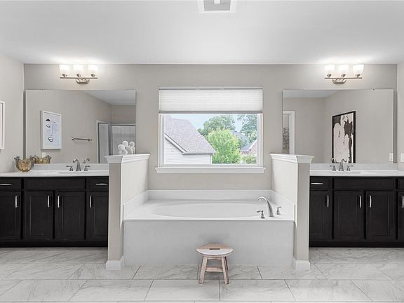 - Breakfast Bar, Breakfast Room, Kitchen Island, Custom Cabinetry, Eat-in Kitchen, Granite Counters, Walk-In Pantry, Double Vanity, Tub, Entrance Foyer, High Ceilings, Coffered Ceiling(s), Open Floorplan, Walk-In Closet(s), Kitchen/Dining Room Combo, Separate Dining