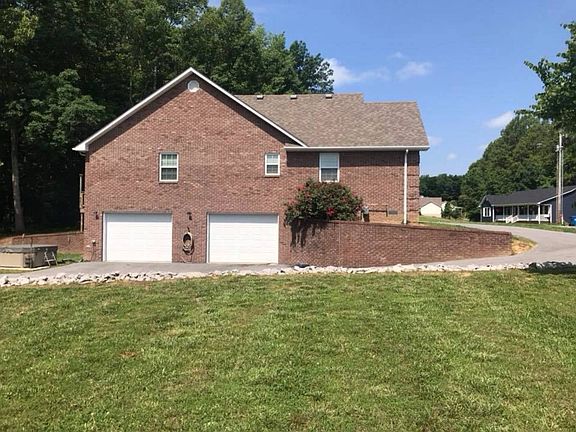 Outside of Russell Springs city limits and moments from the Lake. This beautiful all brick 3 Bedrooms, 3 Baths home features oversized living and dining rooms, a beautiful main kitchen with large pantry, all stainless steel appliances, custom wood cabinets, hardwood flooring throughout, two guest bedrooms, guest bath large master suite and attached bath, fireplace, first/main floor laundry, finished basement with a second kitchen, second fireplace, massive entertainment area perfect as a movie theater, game room, man cave/lady lounge with a full bath and bonus room off wing. Walkout basement is off of the two car garage and opens to a beautiful wooded/secluded back yard and oversized back patio are perfect for back yard summer BBQ’s as well as cool fall nights gathered around the inground fire pit roasting s’mores. This house has so so much more to offer!!! Text 606-271-0341 to schedule your viewing appointment.