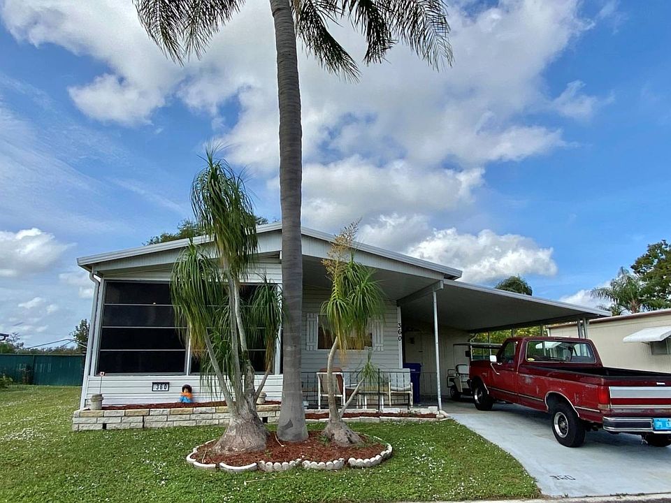 Snowbirds LOOK! Bargain get-away! This 2 bedroom, 1 bath bungalow is a great get away place when it started to snow. Relax and enjoy the Florida sun and warm temperatures all winter long in this affordable get-away home. This is a 1977 home in South Florida's premier part, with 2300 neighbors soon to become friends! All furniture included in sale. Enjoy heated swimming pools, tennis, shuffleboard, games, dances, entertainment and beaches close by. Get as involved as you like...be a couch potato or a social butterfly...you can make your retirement the time of your life! New tie downs, new smoke detectors, and new beautiful flooring! Lot rent is $837 and includes water, sewer, lawn care, roving security, and mega-amenities - fishing, boating, swimming and much more! The price is right! Don't freeze this winter! All listing information is deemed reliable but not guaranteed and should be independently verified through personal inspection by appropriate professionals. Integrity Mobile Home Sales cannot guarantee or warrant the accuracy of this information, measurements or condition of any property. Measurements are approximate. Lot rent is subject to change.