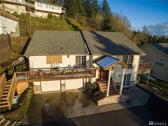 Custom built home with amazing view of the Columbia river from both floors. Kitchen features open concept with abundant oak cabinetry that includes a pull out pantry and huge island. Master has propane fireplace, large walk-in shower. Bedroom on the upper floor includes a jetted tub and walk in closet with built-ins. Sliding glass doors from Master, Living Room, Kitchen and Family rooms. Office has builtins and a murphy bed. Huge Family room includes a wet bar and propane fireplace.