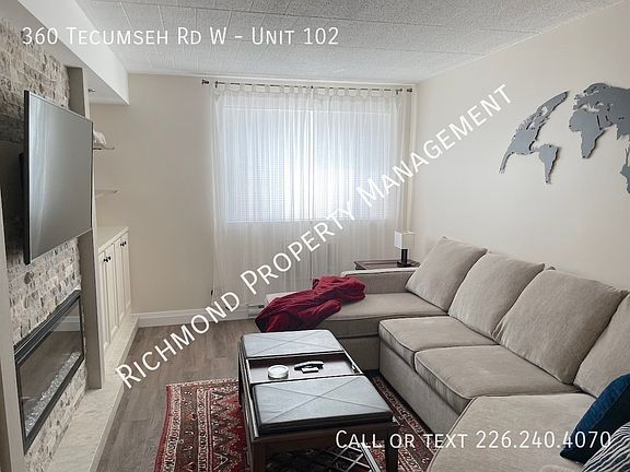 Welcome to this stunning, fully furnished one-bedroom, one-bathroom main floor apartment in a secure building just blocks away from downtown Windsor. This modern unit boasts stainless steel appliances, including a dishwasher, and a spacious walk-in pantry. The open-concept living area is perfect for entertaining, with a beautiful built-in stone fireplace and plenty of natural light. The kitchen features a modern quartz-top island with ample cabinetry. The bedroom offers a large closet and a street-facing window, while the bathroom includes a tub/shower combo and a modern vanity with plenty of storage. Located just a short walk from Jackson Park, this apartment is surrounded by the vibrant nightlife, dining, shopping, and amenities of downtown Windsor. Requirements include first and last month's rent and a minimum one-year lease. Tenants are responsible for the Hydro utility. This is a non-smoking unit. A credit check is also required. Don't miss out on this amazing opportunity book your viewing today!"